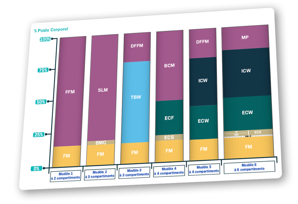 The models that allow the body to be broken down into more or less detailed compartments are described below.
